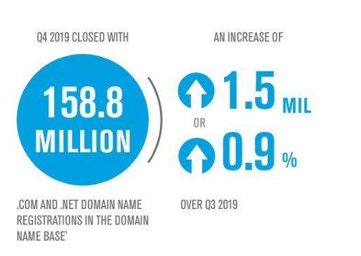 近日,.com域名运营管理机构威瑞信(Verisign)发布了2019年第4季度的域名行业简报数据。